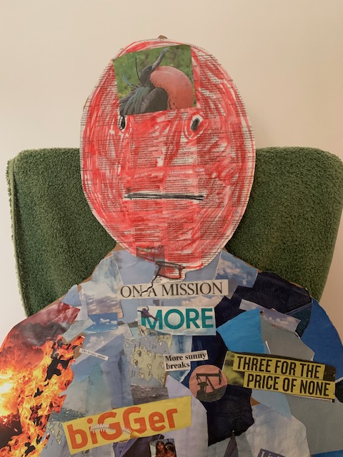 Our conversation around the table was fascinatingly wide ranging often triggered by the complexity of everyday concepts brought physically to life all around us – who are these ‘gods’? is god even the right term? is it offensive or unhelpful? how do they relate (if they do at all) to God or to the ancient gods of Greek myths? What did the things we had created say about us? Do they reflect back to us who we are? And how did they relate to each other? I was particularly pleased when ‘Mother Earth’ (above right) smothered Growth in his rocking chair rather than the worrying reverse.