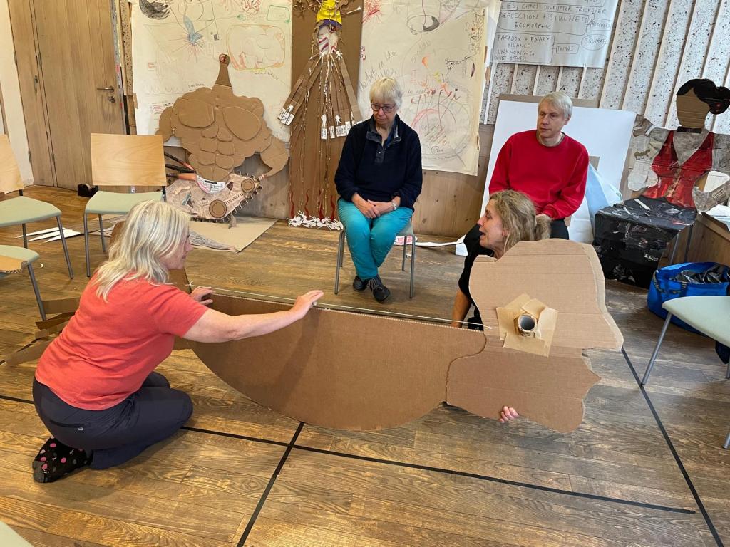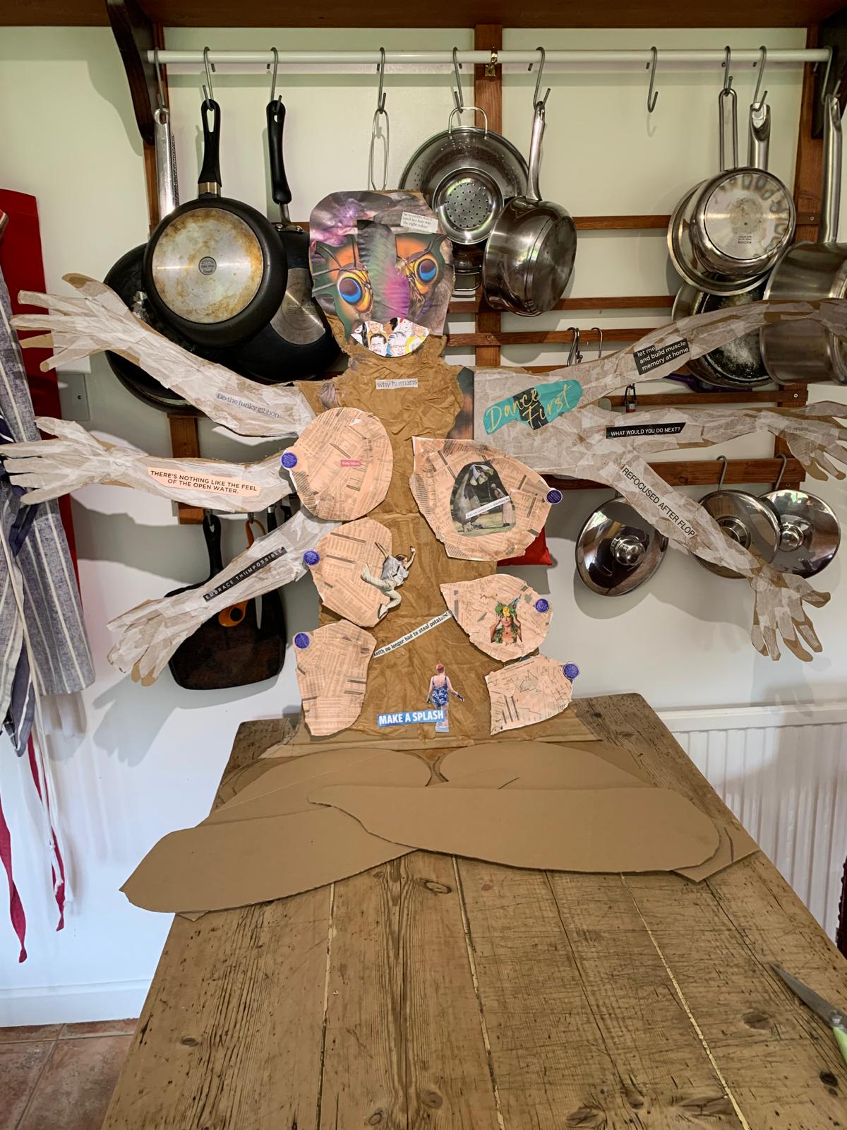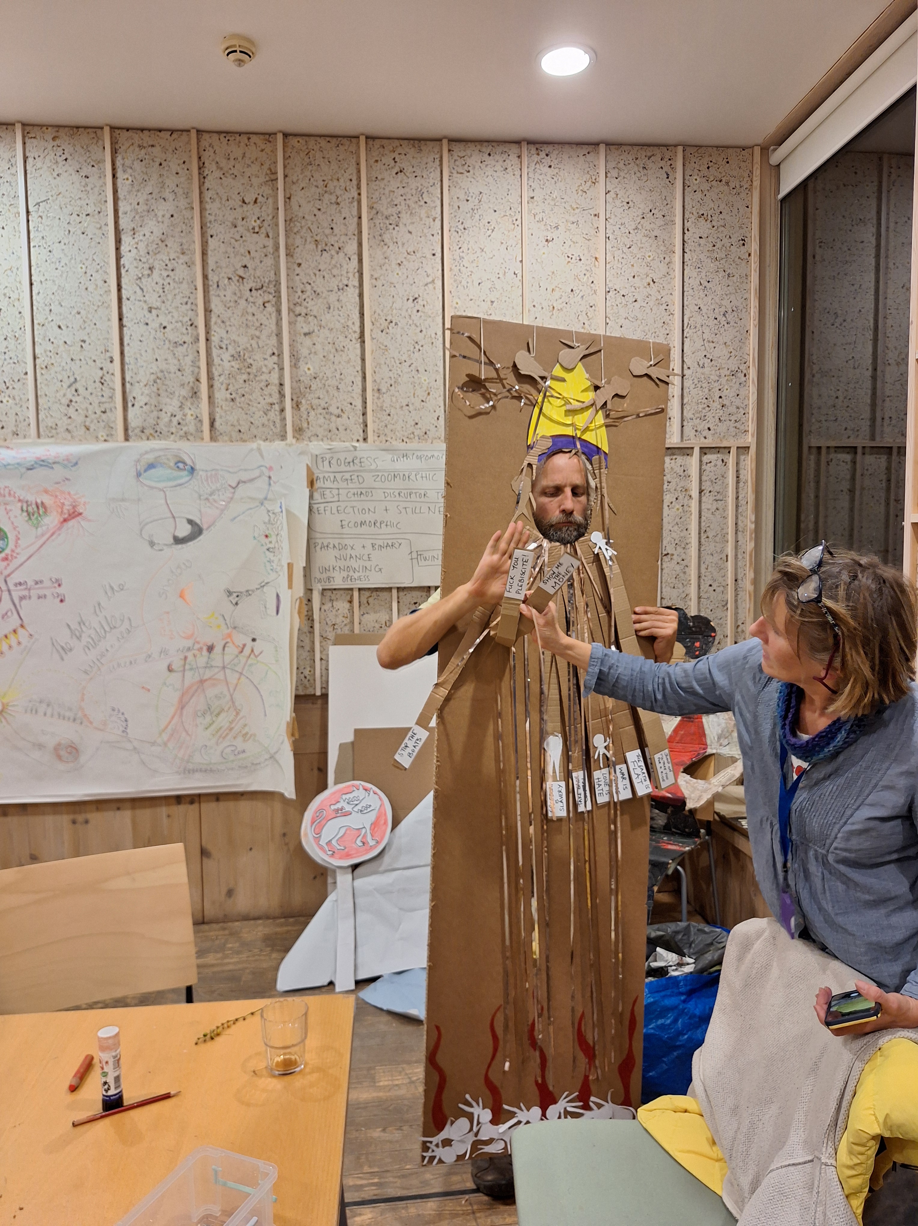 On Saturday, we took 2 of our cardboard ‘gods’ – Death & Growth to London for a session with writer and Improv performer Susan Harrison on ways we might create more animated dialogue with the gods we have made.