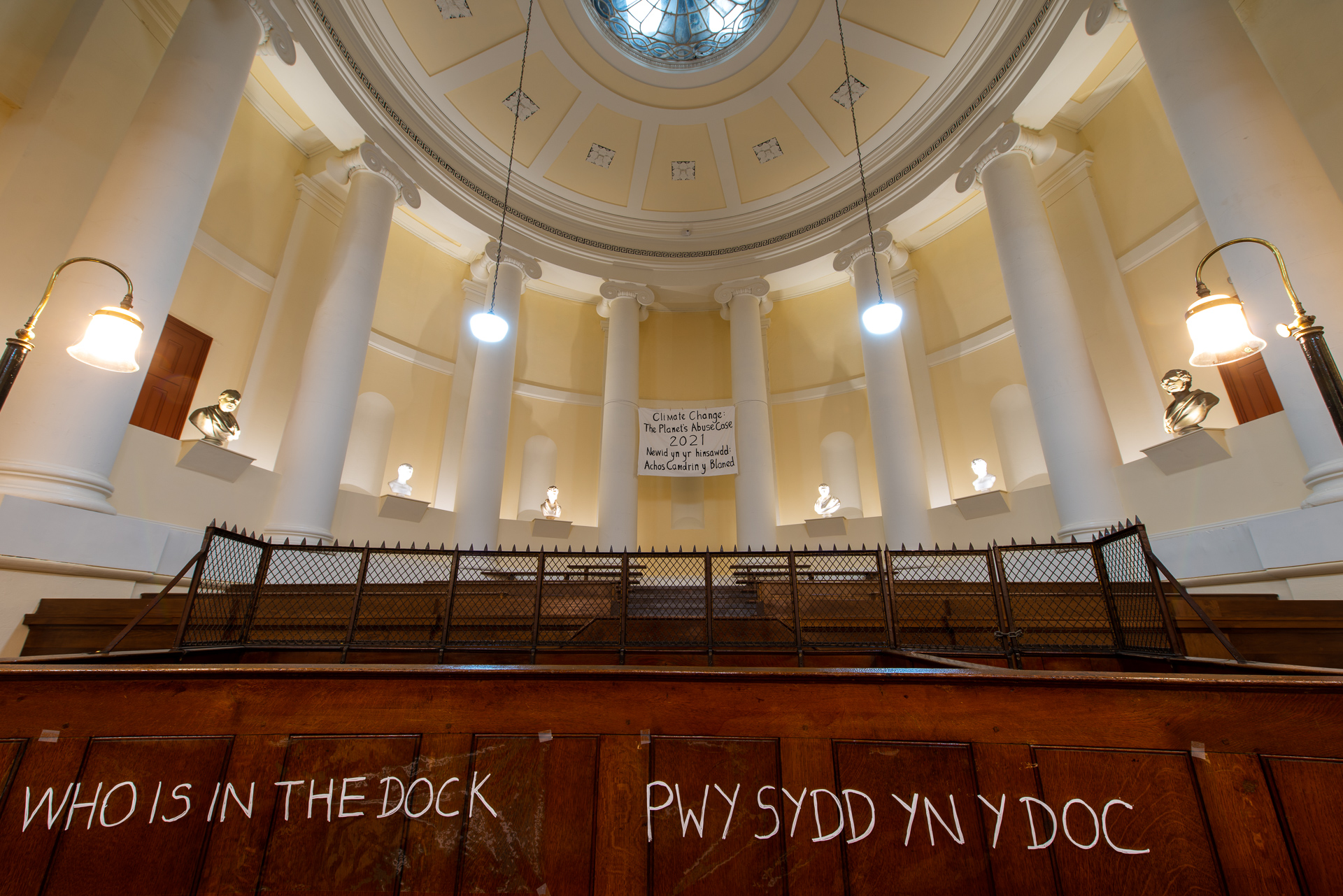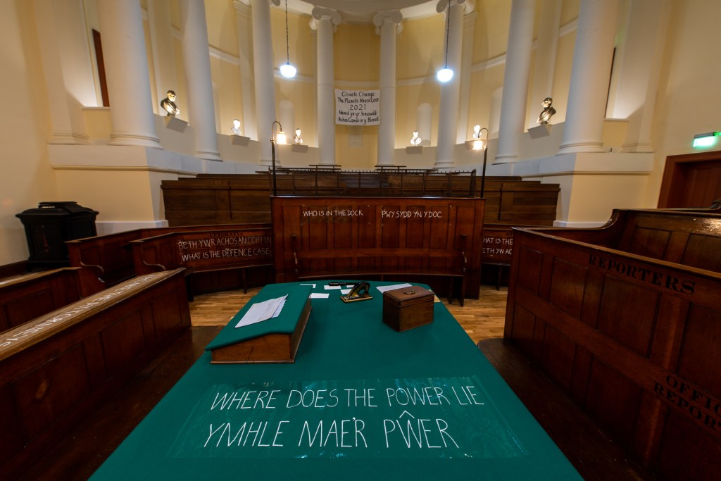 Thanks to Jon Muen for these photos of our Courtroom Abuse Case installation at y Gaer during COP 26.