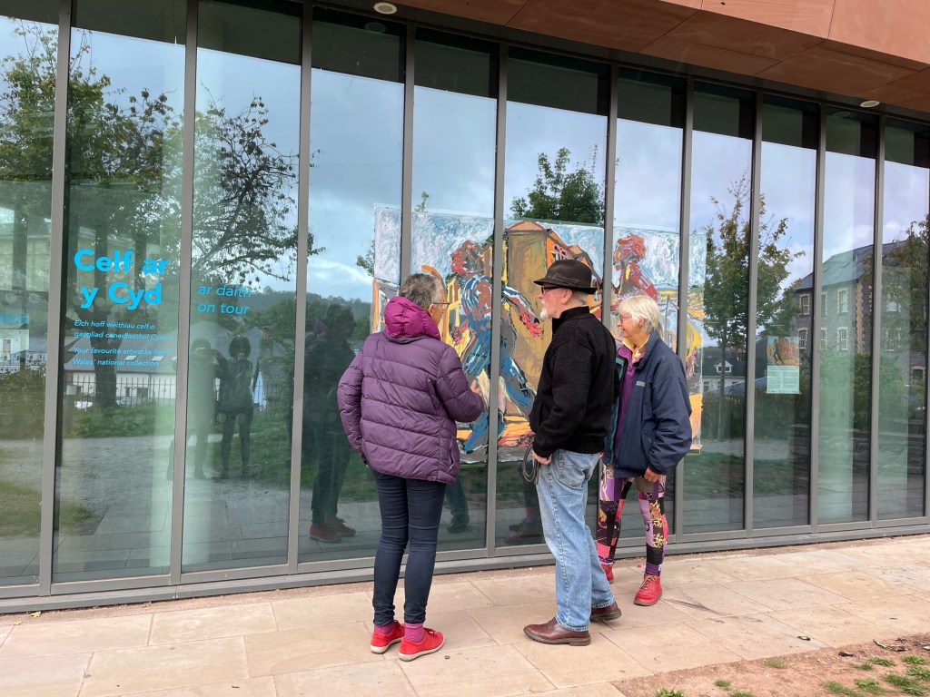 As ‘Running away with the hairdresser’ is part of the Welsh National Collection of Art https://museum.wales/art/online/?action=show_works&item=707&type=artist, it belongs to everyone in Wales so we thought we would bring it outside so a wider ‘everyone’ can enjoy it.