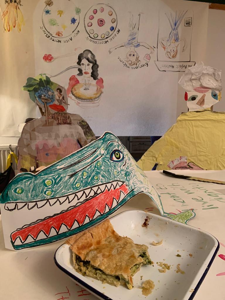 With the metaphor of “growing the pie” being back in use by the UK Government, the Larks & Ravens are busy playing with pies, dinner parties, surprising guests, values, fairness, deserving and undeserving, alter egos, knives, gloves and the occasional crocodile. Step by step it’s building towards something….