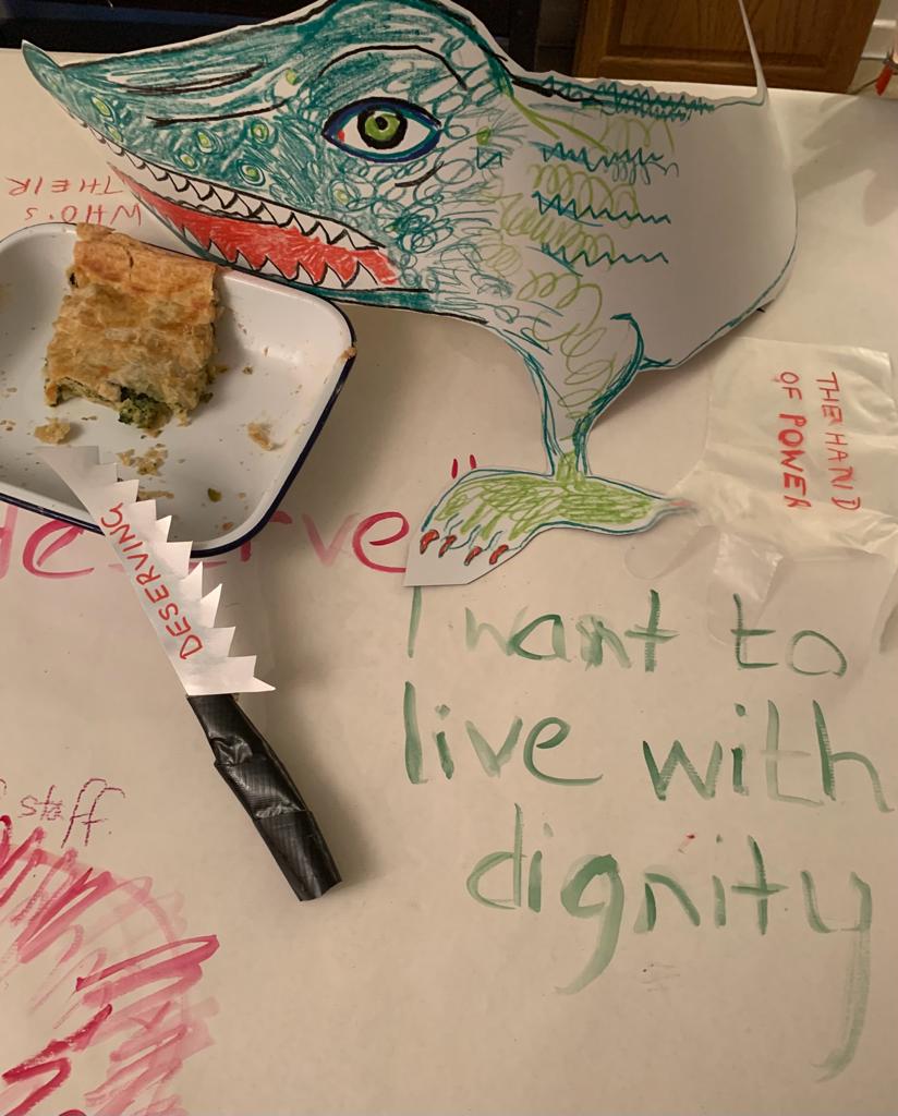 We have just run our first experimental Pie Supper at https://bricksbristol.org/ for 4 invited guests to use art and sharing a pie supper to generate conversations about how to divide a pie in a fair way. Politicians and economists often talk about “growing the pie” so everyone gets “a larger slice” – but does that actually happen? How do you divide a pie fairly? What happens in your home? Who deserves (or doesn’t deserve) what size of slice and why??