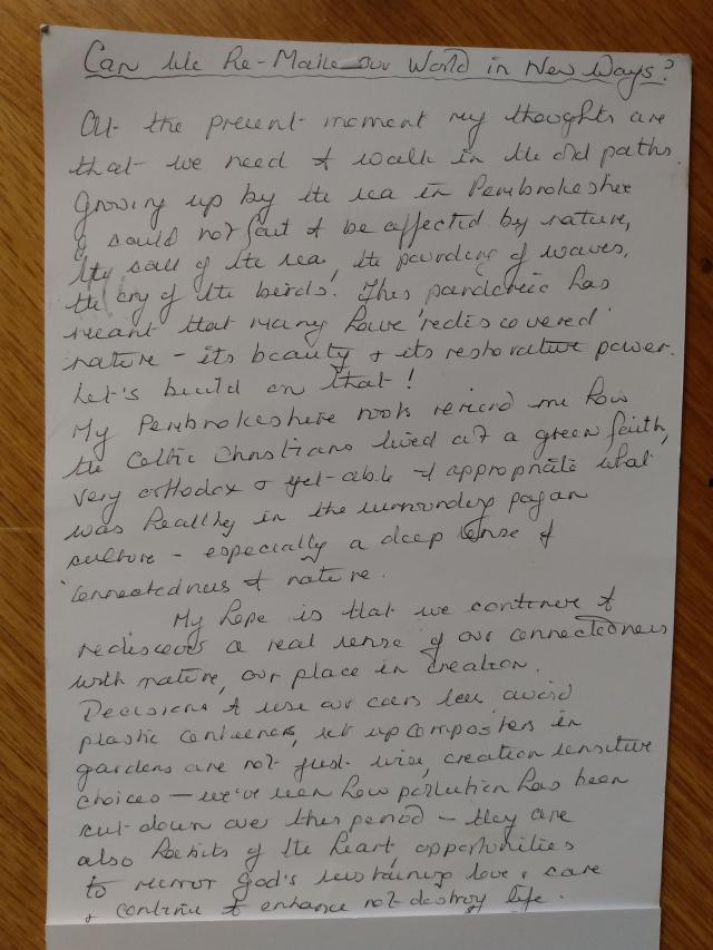 Like others, we have wondered how our world might be remade from the pain and disordering of Covid-19. We wanted to invite others with different life perspectives to join a conversation about possible different futures through either their words or images.