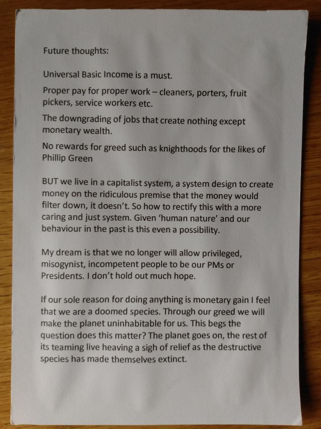 Kirsty, Pip and Alison work together as the Larks and Ravens. Kirsty and Pip are artists and long time collaborators on a variety of social and environmental projects. Alison is a psychologist interested in language and irrational behaviour. We use a combination of our different skills to work with and unravel topics such as value, its odd relationship to money, environmental and social equality issues. During the Covid-19 lockdown we have been working together remotely – making, drawing, writing and discussing.
