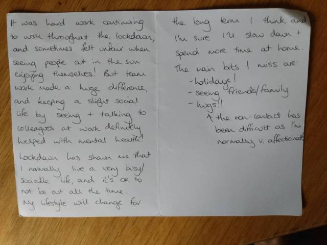 Postcard responses have started to trickle in from all over the UK. Thank you. We are delighted, challenged and moved by the diversity of images, words, emotions and ideas expressed in an A5 space. Thank you. We hope to see more. Sadly, it might still be a while before the 3 of us are able to meet again and lay the cards all out on a studio floor and respond together to them. In the meantime, we hope you can enjoy them in their individuality.